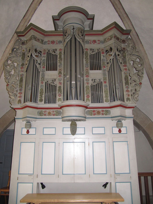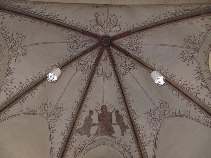 Im Chor befinden sich bemerkenswerte Gewölbemalereien: Christus als Weltenrichter mit Fürbittern. Der reich geschnitzte Orgelprospekt und der 16-armige Kronleuchter im Schiff stammen aus dem ersten Viertel des 18. Jahrhunderts.